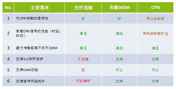 下面对几种目前可选的CPRI传输方式进行比较分析比较: