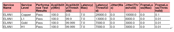 性能测试是开通测试结束后做的较长时间内的测试时,主要测试专线是能按照预期的KPI合法范围长期工作,针对EVC中各类服务等级的业务给出测试指标,便于运营商查看网络专线服务的运营状态。
