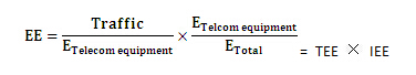 通信网络能源效率指标中的能耗是总能耗,总能耗既包括通信设备能耗,也包括基础设施能耗。当业务流量大时,即使通信设备和基础设施都不节能,网络能效都会很好;相反地,即使基础设施采用了充分的节能措施,通信设备高能耗或低业务流量,都会导致网络能效很低。
