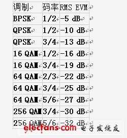 随着调制方式越来越复杂,保持高质量的信号变得更加重要。表1显示了802.11ac中不同调制方式的RMS EVM要求。