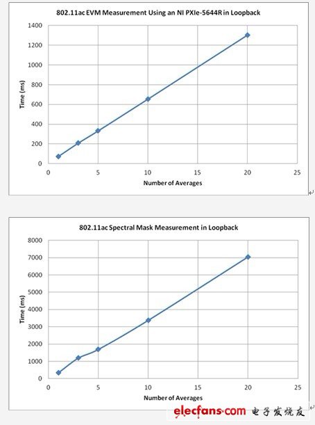 图15显示了在802.11ac中使用不同平均数执行EVM和频谱屏蔽测试所需的测试时间。
