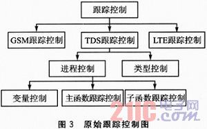 原始方案的跟踪通过类别和进程进行控制,进程的控制包括变量、主函数和子函数。PC端通过跟踪控制工具发送相应的AT命令,在终端的内存中读取相应的设置值。若读取的设置值与跟踪源的值相等,则打印出该条跟踪;若不相等,则丢弃本条跟踪。在本方案中所有的跟踪控制都是在跟踪接口内部,这样对各种跟踪信息的控制更加明确和具体,通过switch…case语句对跟踪类型进行判断,从而决定屏蔽跟踪信息还是打印跟踪信息。原始跟踪控制图如图3所示,每种模式的跟踪控制都采用同样的机制,图3中以TDS模式下的跟踪控制为例进行介绍。