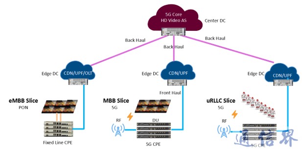 5G业务将呈现出多场景、差异化的特点,如移动上网业务聚焦带宽,自动驾驶业务需要低延时和高可靠性保障,物联网业务要支持巨大的连接数量。对此,5G的无线接入网和核心网都进行了功能重构,根据业务类型改变设备处理单元的物理部署位置,并通过切片在同一张物理网络上对不同类型业务构建独立的端到端逻辑网络。