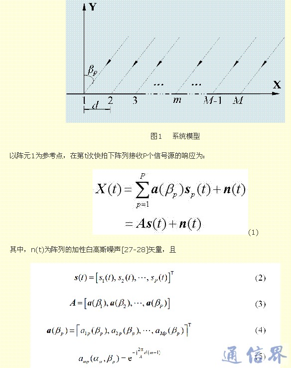 如图1所示,M个阵元的均匀线阵,相邻阵元间间距为d,d小于等于信号源半波长,接收P个入射方向为[β1, β2, …, βp, …, βP]的远场窄带信号[25-26]入射波长为λ。