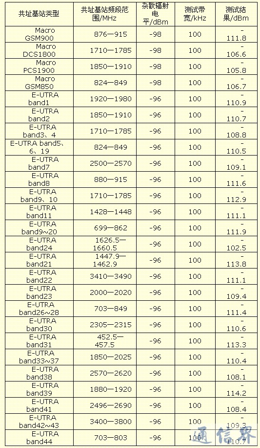其他测试杂散发射测试的基站类型只需重复上述步骤即可,最后的测试结果如表3所示: