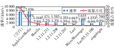 图1示出的是流量TOP6的视频业务流量占比和速率统计。
