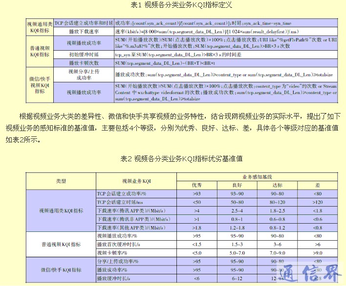 视频业务作为4G网络的重要应用业务,为保障其业务质量和用户感知,广西联通以“视频业务分类感知差性为基础构建的KQI指标体系”为核心,积极开展视频业务感知优化工作且取得丰硕成果,并联合OTT等视频服务商优化视频业务,该问题分析思路及工作开展模式取得较好的优化效果,值得推广借鉴。