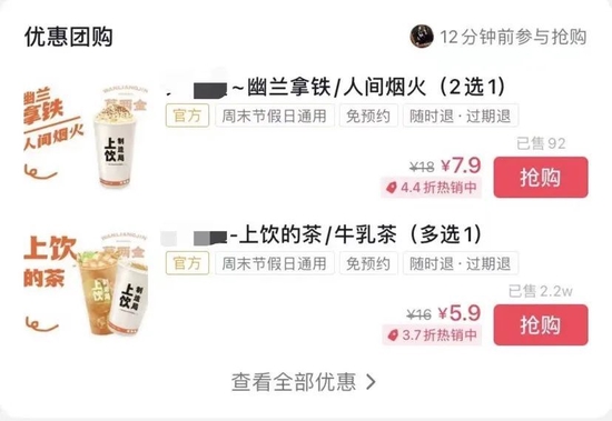 “我们原价16元的牛乳茶只卖5.9元,这个套餐在美团上是没有的,是专门在抖音上打造的爆款。”图图告诉记者,自家面包点心店开张不久,目前已成为抖音上海嘉定区人气榜的第一名,大力推广该“爆款”抖音团购套餐,便是为了引流获客。