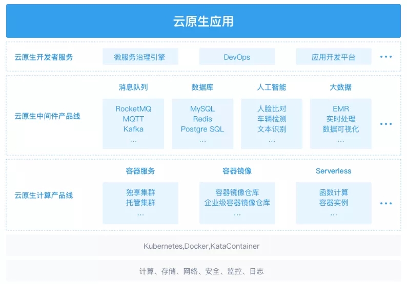 包括容器服务、Serverless等,封装异构基础设施提供负载支撑,有效解决异构环境部署一致性问题,促进了资源的标准化。