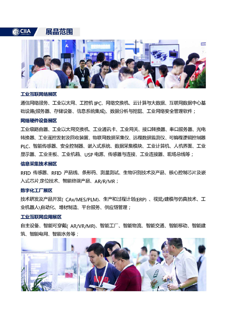 “CIIA Expo 2020”为了更好地促进展会交易,增加合作与交流机会,进一步丰富展会内容,主办方将精心组织一系列重要的商务交流活动。主办方凭借在国际会展组织的丰富经验,整合行业资源,坚持“国际化、专业化、市场化、品牌化”的办展思路,与国内外100多家协会\媒体通力合作,全力将展会打造成集贸易洽谈、展示交易、信息交流、形象展示于一体的工业互联网及创新应用领域品牌盛会!