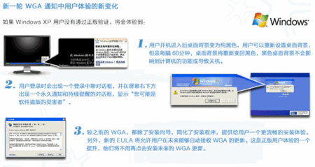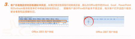 为打击盗版,微软在2007年3月就在中国推出了Windows正版增值计划,而Office的正版增值计划OGA是首次在国内发布,这两个验证工具可以自动检测验证用户电脑上安装的Windows XP和Office是否为正版软件。如果使用了盗版软件,用户会不断收到正在使用盗版软件的提示。