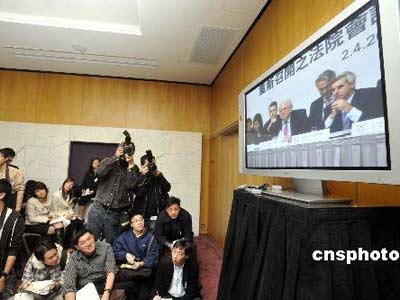 媒体透过大会安排电视转播关注场内会议情(图片来源:中新网)
