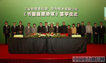 图片说明:工信部与华为在北京签署节能自愿协议