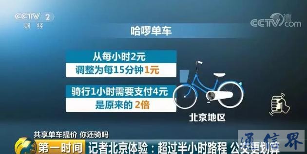 而哈啰单车,则从每小时2元,调整为每15分钟1元,也就是说骑行1小时现在需要支付4元,是原来的2倍。