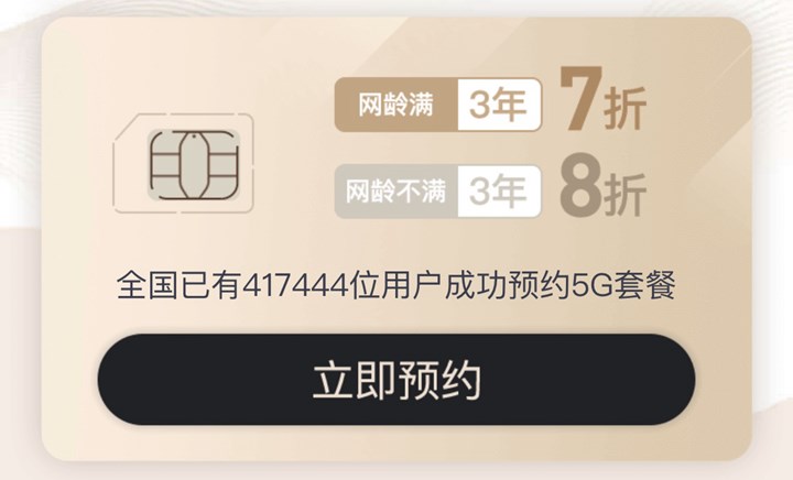 9月30日消息 今日凌晨,中国联通5G套餐正式开启预约。中国联通表示,即日起至5G套餐正式上市前,预约5G套餐可享折扣优惠。网龄3年及以上用户享7折优惠,网龄3年以内及新入网用户享8折优惠。