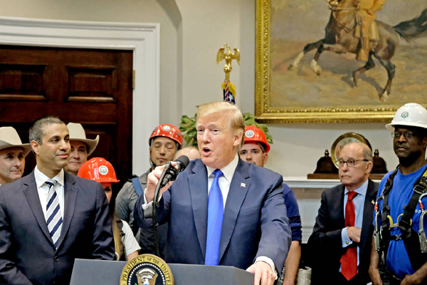今年春天,美国总统特朗普在白宫站在一群戴着安全帽的电信维护人员面前宣布,部署一张超高速5G无线网络是国家的优先任务。