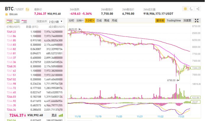 受消息影响,在过去的24小时里,比特币价格已经暴跌至6个月以来最低水平,跌破7000美元,最低跌至6790美元。