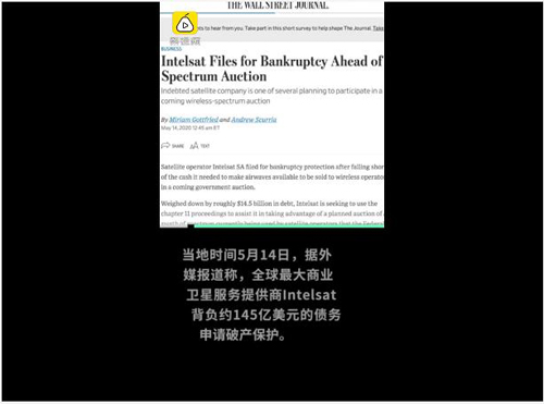 全球最大卫星服务公司申请破产 (来源:梨视频)