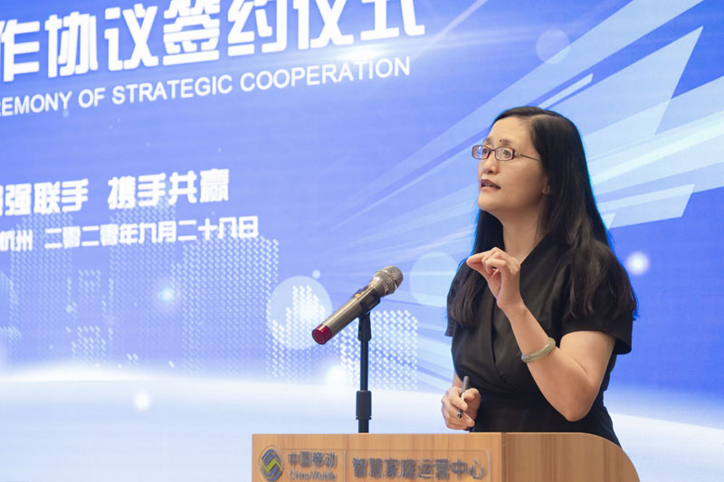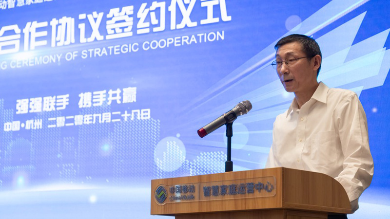 图为中国移动智慧家庭运营中心党委书记、总经理郦荣发言