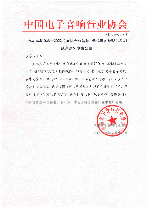 7月18日上午消息,近期由中国电子音响行业协会与中国电子技术标准化研究院共同牵头发起,T/CAIACN 008-2022《高清无线音频技术与设备规范及测试方法》正式发布(以下简称HWA高清无线音频标准,Hi-Res Wireless Audio,标准),该标准是以消费者实际体验为出发点的、涵盖主客观评测的综合性标准。