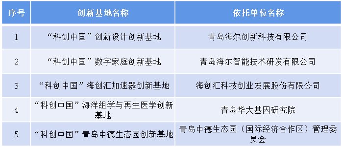 在全国194个创新基地中,有5个来自青岛,分别依托青岛海尔创新科技有限公司、青岛海尔智能技术研发有限公司、海创汇科技创业发展股份有限公司、青岛华大基因研究院、青岛中德生态园(国际经济合作区)管理委员会5个主体。就青岛区域来看,海尔数量最多。