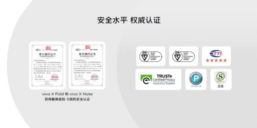 ▲ vivo X Fold和X Note获泰尔实验室最高等级5级安全认证(左)