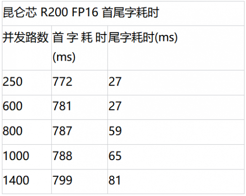 整体来看,在FP16量化后不同后端均达到精度无损,昆仑芯高性能推理库方案单卡并发达到了1400路,相比CPU的350路的最大并发,性能提升约4倍,首字和尾字耗时也大大降低,降本增效明显。单机单卡的测试外,也进行了单机4卡的压测,单机4卡GPU和4卡R200均达到了4000路并发。