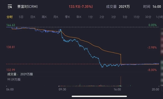 ▲Salesforce近一年来估计下跌超50%(图源同花顺App)
