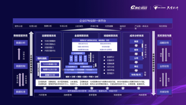 在企业领域,久其通过EPM企业绩效管理解决方案为众多央企和企业集团在建设世界一流财务体系、管理体系中提供服务。在EPM体系构建过程中,按照决策层、经营层、业务层的维度,通过战略、场景、报告、指标、系统的角度构建横纵结合的数字化管理体系。如,面对能源生产企业集团希望通过数据治理降低成本、防范风险的实际需求,久其EPM基于用户现有信息化体系可以为其实现业财的深度融合,通过制定统一数据标准,实现数据的层层穿透,并在成本分析系统中按各级层管理需求进行数据控制,实现战略财务、业务财务、共享财务的实时滚动沟通。
