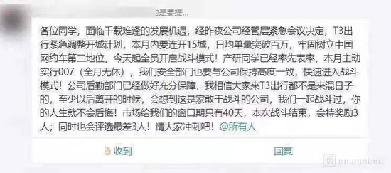 去年7月,滴滴系APP下架,行业出现罕见窗口期。美团、高德、曹操出行、首约汽车、T3出行等平台迅速上线补贴项目,试图吞下霸主滴滴留下的空档。在一张广为流传的截图里,T3出行紧急调整开城计划,要求全员开启战斗模式,主动实行007(全月无休)。