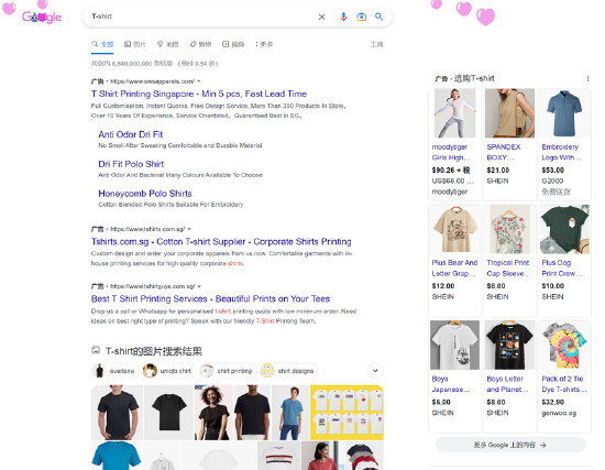 这年头“Google一下”,可以说是从广告堆里扒拉结果,显眼点的答案可能和你想问的东西并不是一回事。比如用谷歌搜“T-shirt”,首页大多数是各家广告和商品推荐。