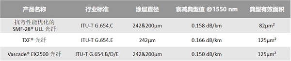 VascadeEX2500光纤同时提供200μm外径尺寸的产品,这是业界推出的首款满足G.654.E标准的200μm外径光纤,能更好地支持高密度、大容量光缆的设计与制造。