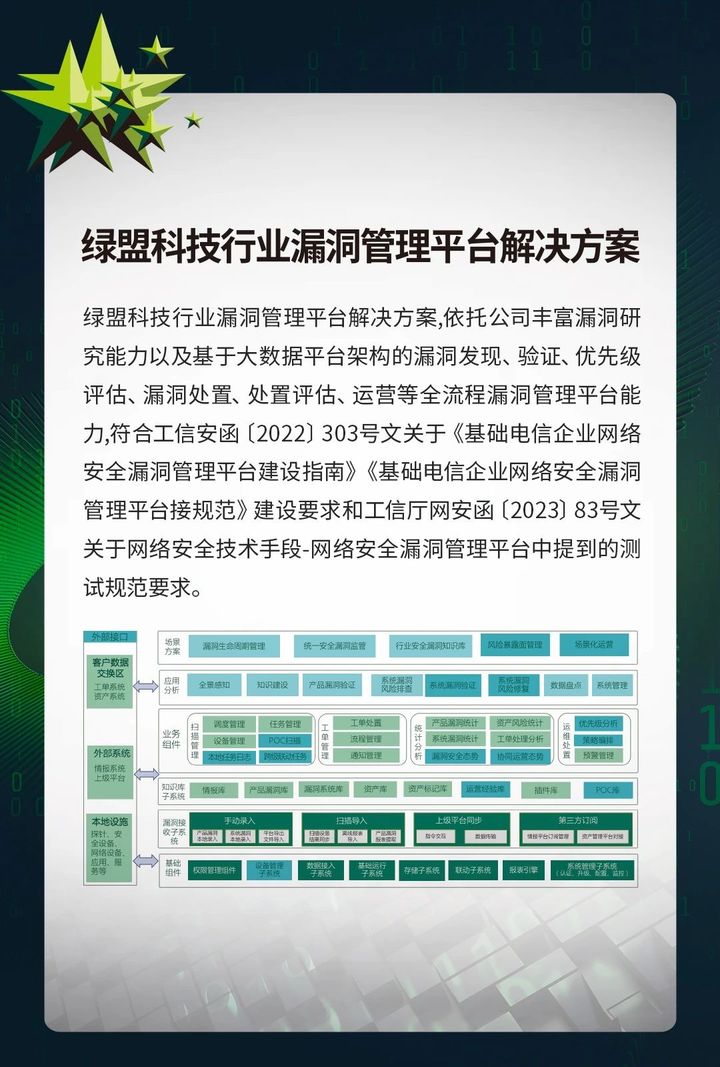 随着数字经济时代加速到来,数字化、信息化、智能化正与各行各业深度融合,网络安全形势愈发严峻。2023年,中共中央、国务院印发的《数字中国建设整体布局规划》中提到,要强化数字中国关键能力,其中包括筑牢可信可控的数字安全屏障,切实维护网络安全,完善网络安全法律法规和政策体系。 在数字化浪潮中,绿盟科技始终肩负着自己的使命,23年以来持续深耕网安行业,高度重视网络安全技术研究,推进网络安全产品创新。针对运营商业务融合带来的新挑战,绿盟科技陆续发布了5G安全、数据安全、云网安全、APT、漏洞管理等安全解决方案,并持续与运营商协同发展,在网络安全增值业务不断发力,将更多的安全能力转换为业务增值能力,在面向企业服务领域为运营商开辟新的业务增长空间。 未来,绿盟科技将继续秉承“巨人背后的专家”之使命,为运营商提供全面的安全保障能力,夯实数字中国建设框架的安全屏障。