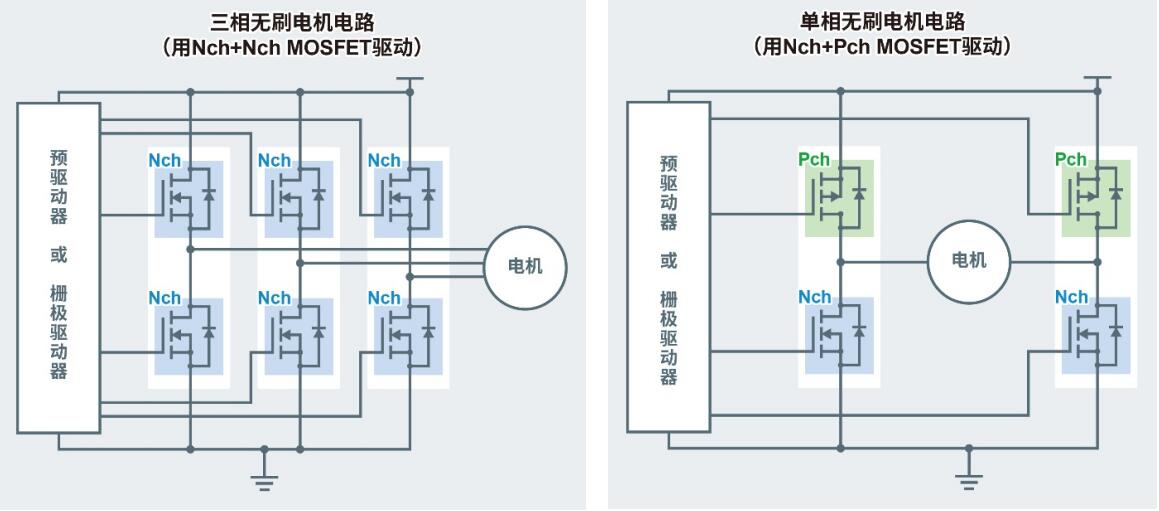 Nch MOSFET:通过向栅极施加相对于源极为正的电压而导通的MOSFET。相比Pch MOSFET,漏极与源极之间的导通电阻更小,因此可减少常规损耗。