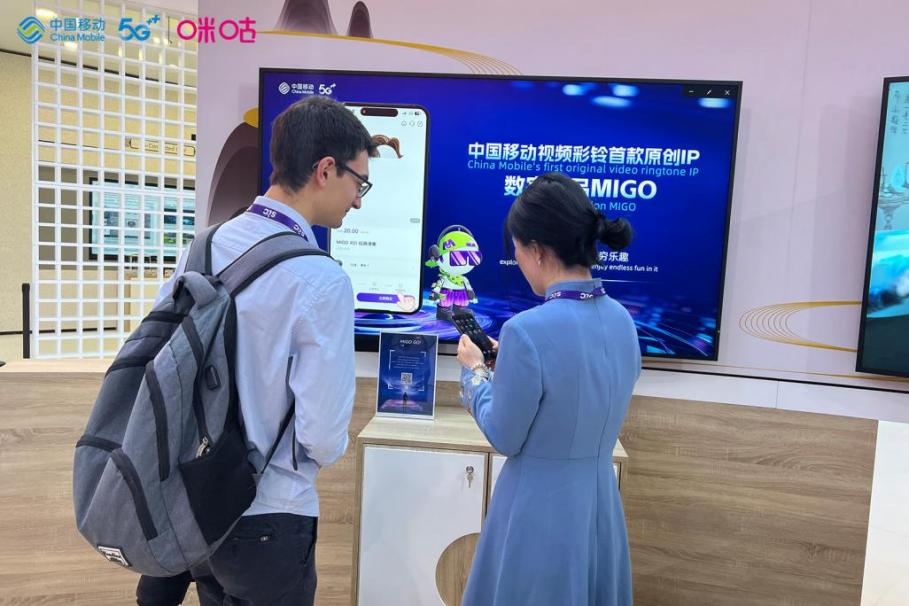 在MWC现场,咪咕的“百宝箱”里还亮出视频彩铃、NFT视频彩铃、裸眼3D等技术绝活,更有来自墨西哥的运营商,现场热情咨询了视频彩铃的相关内容。近年来,中国移动发挥在视频彩铃领域长期深耕的核心技术优势,持续输出符合国际化5G产品标准的视频彩铃端到端全域解决方案,将优势技术推向海外。当前,中国移动主导制订了多项CCSA、ITU-T、3GPP等视频彩铃国际化标准,公开专利208件,居行业首位。此外,咪咕还开拓NFT视频彩铃创新业务,依托中国移动区块链能力,实现了视频彩铃优质内容的上链铸造与限量发行,受到广大用户的欢迎。