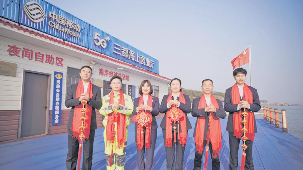 中国移动福建宁德分公司“海精灵”党员先锋队自成立以来,将海上营业厅融入“滴水穿石—习近平精准扶贫实践”研学线,率先在宁德三都澳海域建成全国首个5G海域精品示范网,实现了50公里海域5G全覆盖,海域网络速率提升80%、容量提升2倍,先后解决29个渔村“无网可上”的问题,建起了海上“信息高速”。同时,福建移动在海上营业厅建设了全国首个海上“5G巡回法庭”“金融消保工作站”“医社保服务站”等。