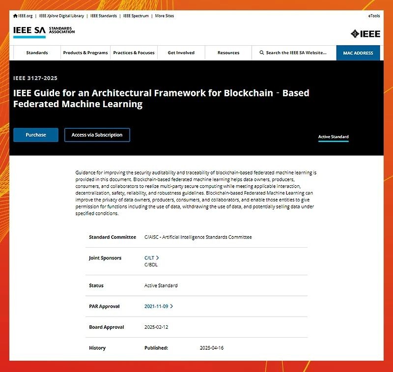 IEEE P3127标准,为基于区块链的联邦学习提供了统一的架构指导,显著提升了多方联合建模的安全性、可追溯性与隐私保护能力。这一标准有效破解了跨机构协作过程中“数据孤岛”与“信任缺失”的难题,为政务、金融、医疗、工业制造等领域提供了安全可靠的数据共享与模型优化解决方案,推动了人工智能与区块链技术深度融合,促进了AI技术在垂直行业的标准化与规模化应用进程。