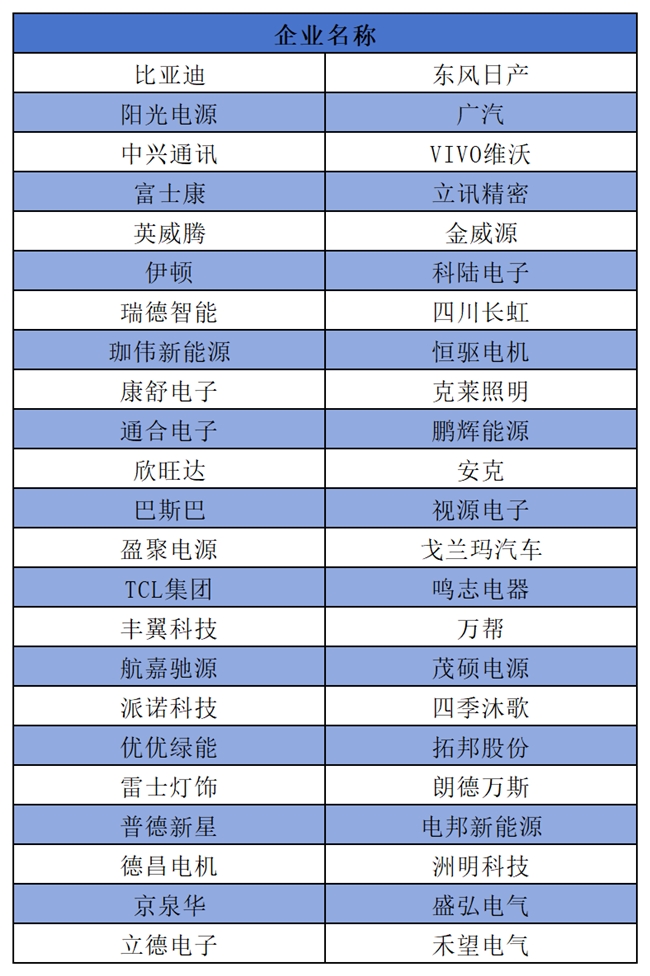 材料企业:美磁、东阳光、凯通、中德、回天、万宝等20家磁材、线材、胶材和精密结构件企业。