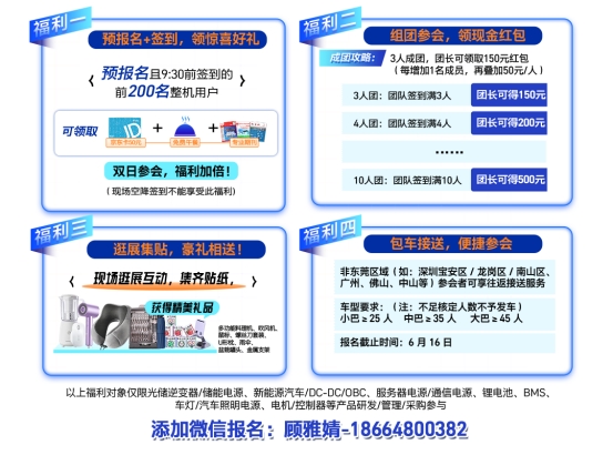 截至目前,已有比亚迪、东风日产、广汽、阳光电源、中兴通讯等200多家整机头部企业从业者报名参会,报名企业涵盖光储充、800V超充、AI服务器及电源、锂电BMS、汽车照明、汽车中小电机等领域,是一场电子制造业工程师不容错过的盛宴。