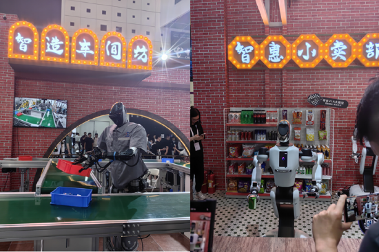 在银河通用展台,Galbot机器人忙碌地从货架上取下商品,并递到刚在屏幕前下完单的用户手里,完成了一场从自主推理、零遥操的真实“售货”展示。