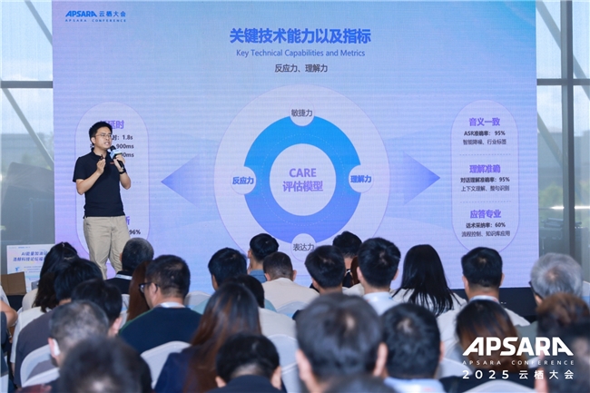 阿里云智能集团云通信资深技术专家刘强奇解读了智能联络中心2.0的技术演进与实践。他指出,云通信正从“AI for Communications”迈向“Communications for AI”,面临知识分类、流程数字化与组织升级三大挑战,需通过开放、开源、协作的生态共建实现突破。为此,阿里云提出“CARE评估模型”,从理解力(ASR/理解准确率双95%)、反应力(端到端延迟1.8秒,打断识别率96%)、表达力(TTS准确率98%,情感自然度95%)和敏捷力(分钟级构建、自动调优)四大维度,构建可衡量、可优化的智能语音服务标准,助力企业实现高效、自然、有温度的AI交互体验。