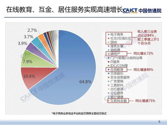细分领域中,在线教育、互联网金融、居住服务等业务实现高速增长。