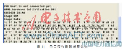 为方便检验采集到的图像,将ARM采集到的图像数据通过UART口发送到PC终端,再将数据组合成图像显示。接收到的数据如图11所示。