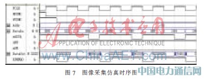图7是用Verilog语言编写的程序仿真的图像采集时序图。