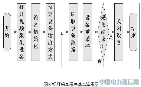 TVP5150 驱动程序以包含在Linux内核中,本设计是基于该驱动程序实现视频采集的,视频采集程序基本流程如图3所示。