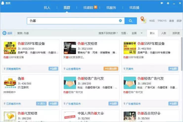 通过对qq群搜索就会出现很多相关的伪基站贩卖群: