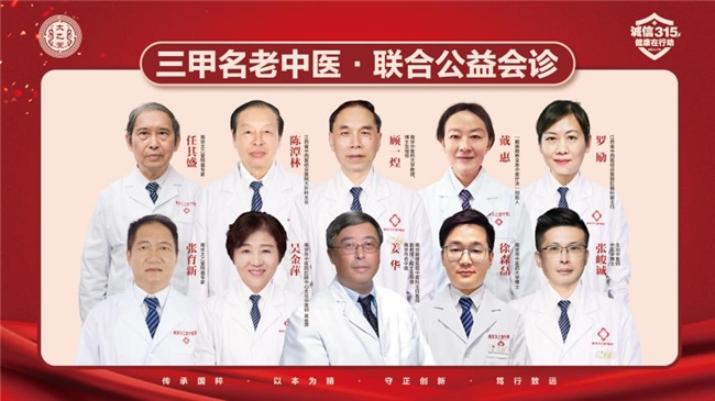 3月15-16日,“诚信3.15·健康在行动”三甲名老中医联合公益会诊日正式开启!会诊日期间,南京太乙堂中医院特别邀请南京鼓楼医院中医科主任医师、硕士生导师、南京市名中医姜华教授;南京中医药大学博士生导师、中华中医药学会养生康复分会副主任委员顾一煌教授;南京中医药大学针灸推拿学博士、澄江针灸学派传人徐森磊博士;南京中医药大学针灸推拿学博士、南京非物质文化遗产“京西庞氏正骨法”传承人张峻诚主任;江苏省中西医结合医院大外科陈潭林主任;南京市中医院肛肠中心吴金萍主任;江苏省中西医结合医院肛肠科罗励主任;戴维顺势全息中医疗法创始人、上海复旦大学易感疾病基因方面专家戴惠主任;国家级名中医谢昌仁亲传弟子、副主任中医师任其盛主任;南京太乙堂特邀心脑血管专家张育新主任等名医专家,为心脑血管疾病、疼痛疾病、肛肠疾病、高血压、高血脂、高体重、糖尿病、痛风、失眠等慢性病患者提供规范化诊疗和慢病健康管理服务,全面守护慢性病患者的健康!