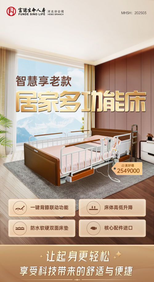 此外,富德生命人寿的适老化改造还涵盖了洗澡凳、恒温坐浴器、电动升降坐便辅助器、多功能电动床等一系列创新产品。这些产品不仅解决了老年人日常生活中的实际困难,更在无形中提升了他们的生活质量。比如,洗澡凳和恒温坐浴器的设计,让老年人在浴室中也能享受到尊严和舒适;电动升降坐便辅助器则帮助行动不便的老年人轻松如厕;而多功能电动床则根据老年人的睡眠需求,提供了全方位的舒适体验。